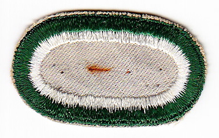 Description: NOTE: This differs from 600th QM in that the inner band is white and the twill background is gray. Minor storage marks, and shows holes where airborne wings were attached.