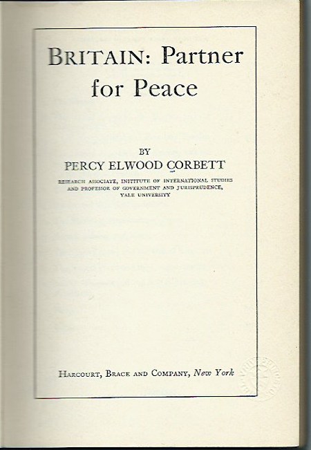WW2 "Britain: Partner For Peace" by Percy E. Corbett hc $15.00