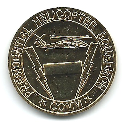 This is a photo of the reverse of the Presidential Helicopter Sq COMM coin.