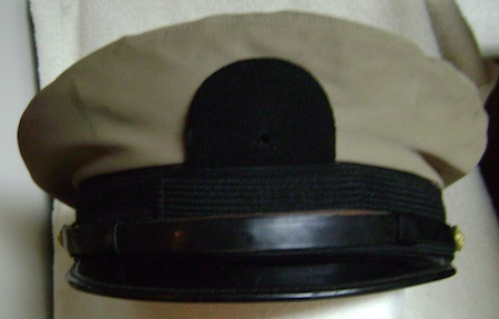 Bancroft Military Caps. Tan waterproof oilcloth, no insignia, used but not abused.