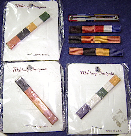 Three (3) sets of these ribbons are still in their original "Military Insignia" package. ALL are mounted on pin back racks. All are in excellent condition but the packages show some shop wear. I cannot find out how old these are or what achievements they represent.