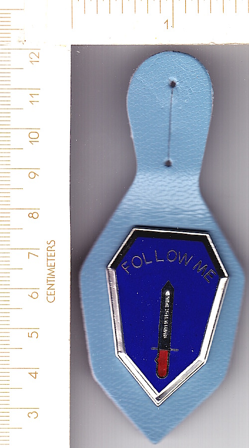 Made in the USA regular pinback with two(2) clutch posts. About 2.5 times bigger than the unit crest.