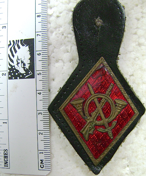 Instructor badges were worn on a button on the right pocket. Instructors were recruited from a variety of areas and were generally short-term so sewing on a cloth patch was not feasible.