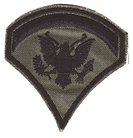 Amy SPEC 5 chevron. Vietnam OD twill ce ns $5.00